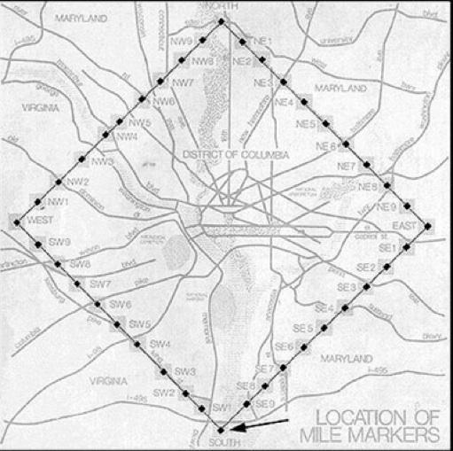 A great place to start in Washington is in it’s layout. Shaped like a perfect cube turned to one side, a diamond. Nestled between two states, Virginia and Maryland. This is a code: THE VIRGIN MARY-Land. This is the Capitol of the New Atlantis and it would birth a new ideal: Religious and Political Freedom for all. Surrounded by 40 stone markers- we will find as this story unfolds that this is a sacred number and has deep meaning.