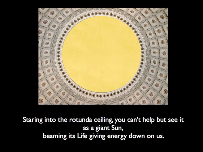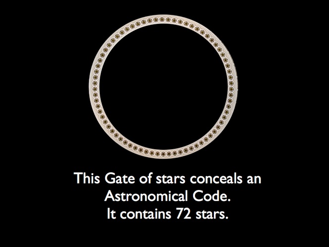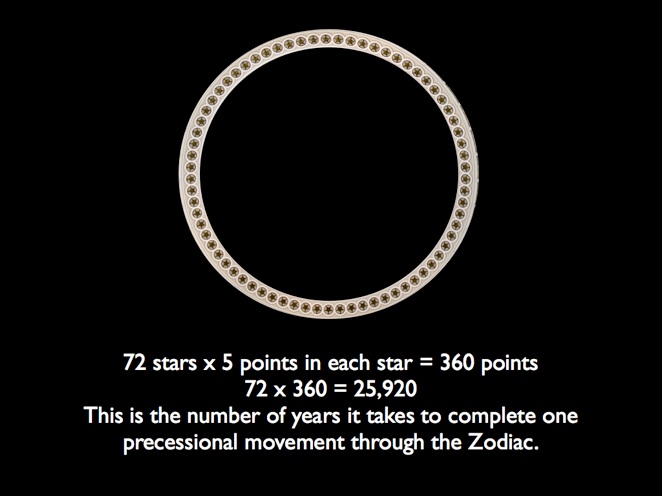 The number 72 is represented in a ring of stars in the rotunda, pointing to the precessional movement of our Milky Way Galaxy.