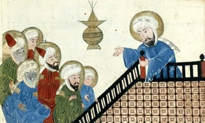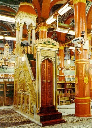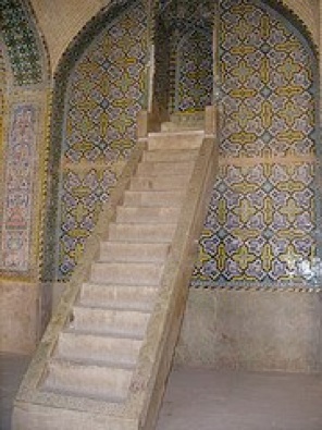 Wiki - “A minbar (Arabic: منبر, also spelt mimbar or mimber) is a pulpit in the mosque where the imam (leader of prayer) stands to deliver sermons.