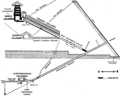 The Great Pyramid has Three Main Chambers. The middle chamber, called the Queen’s chamber (C), has a